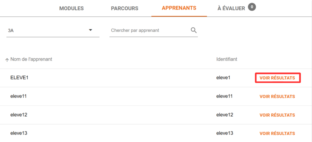 Les résultats des stagiaires sont exportables depuis la page Résultats & Suivi.