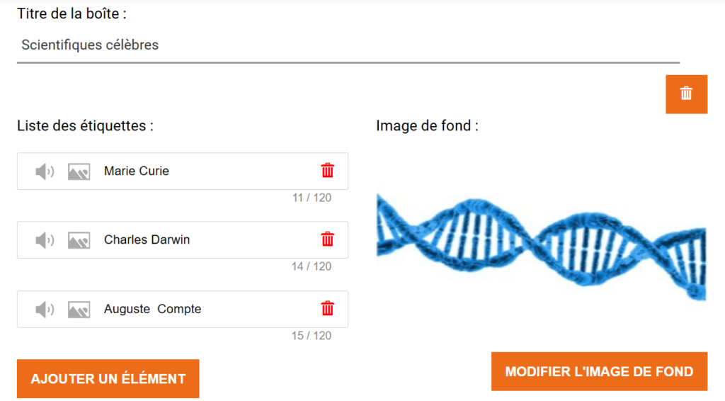 L’élément Grouper des éléments vous permet de créer des boîtes dans lesquelles placer des étiquettes mélangées.