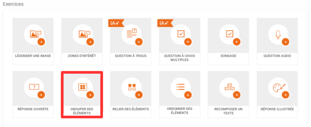 Cliquez sur +Ajouter un nouvel élément > Grouper des éléments.