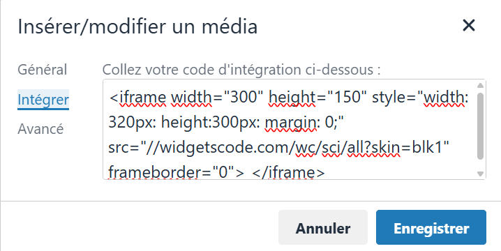 <iframe src = « Lien du widget calculatrice » ></iframe>