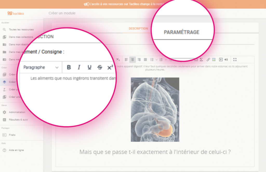 4/ Vous pouvez maintenant modifier l’élément au niveau de son contenu et de ses paramètres.