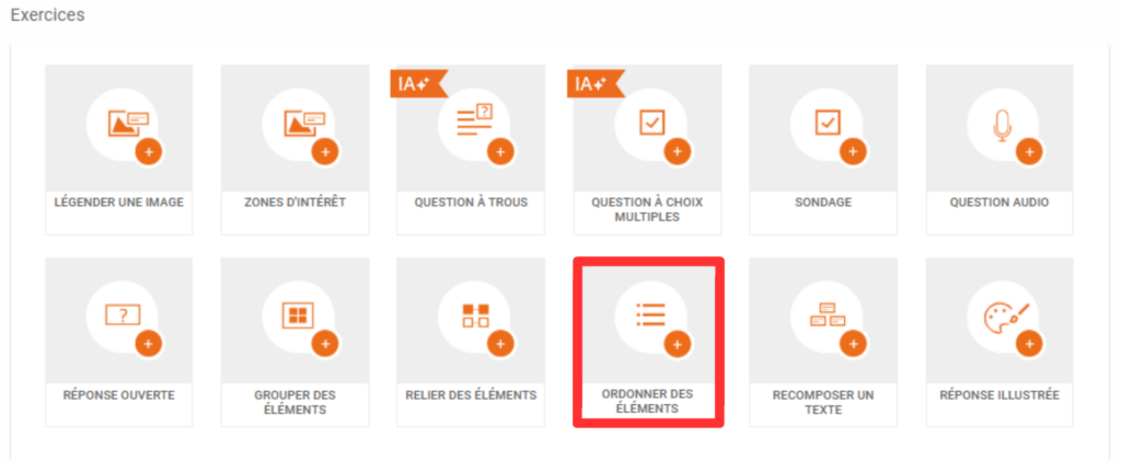 L’exercice Ordonner des éléments consiste à classer des étiquettes dans un certain ordre.